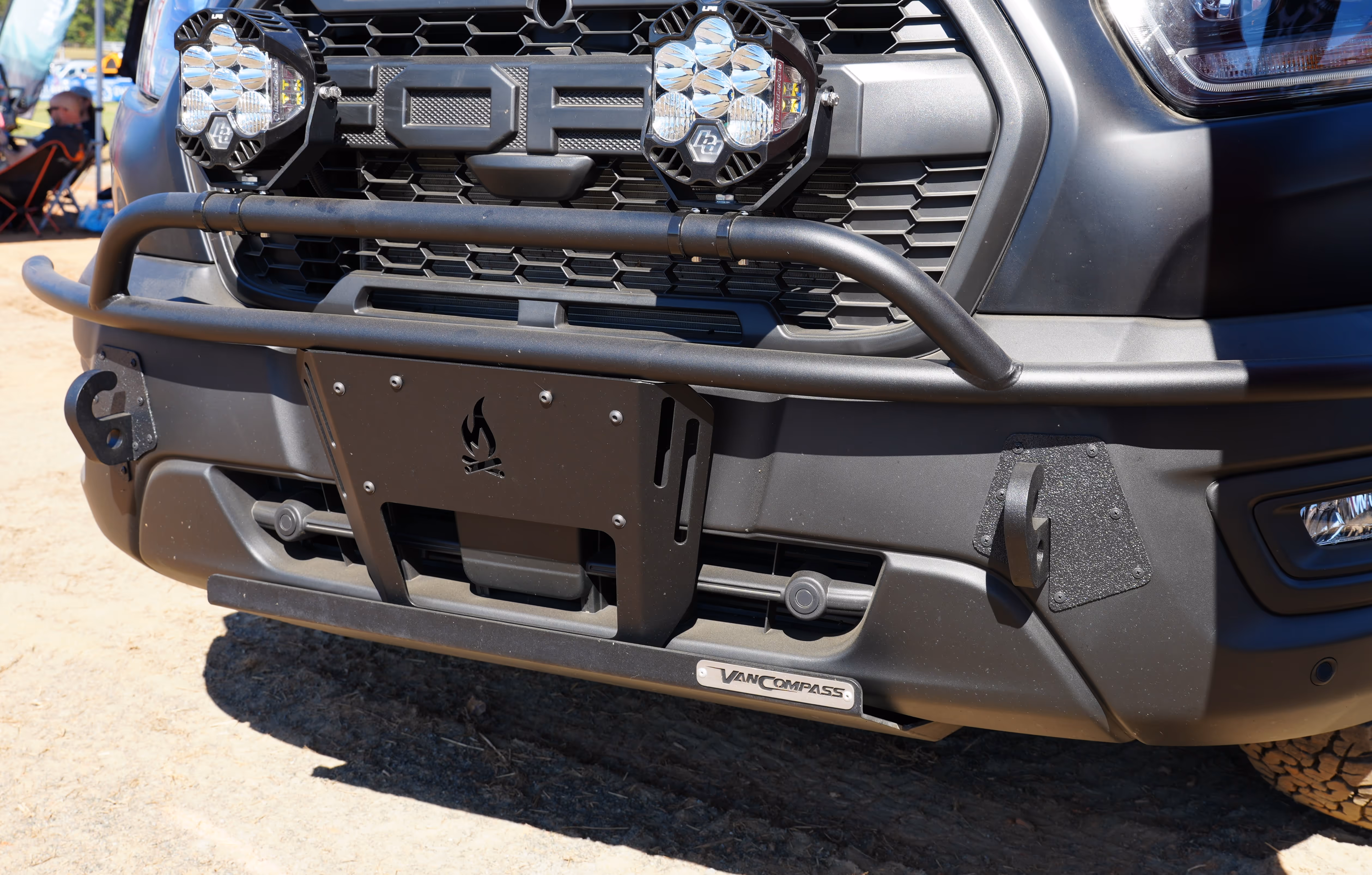 Reinforced recovery points bolted to the frame for serious off-road pulls.