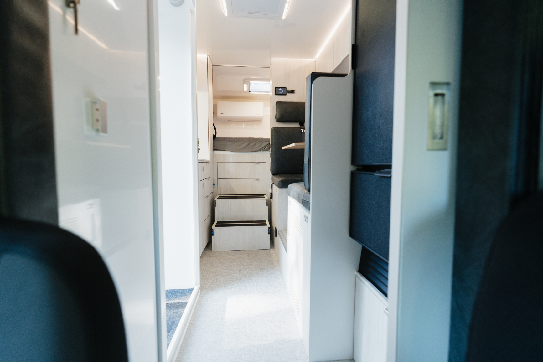 This is a purpose built RV, not a van conversion. The insulated electric cabin, advanced power system, and Ford Transit AWD 1 ton chassis come together to create a high tech rig designed for people who want to explore year round without sacrificing comfort or reliability.