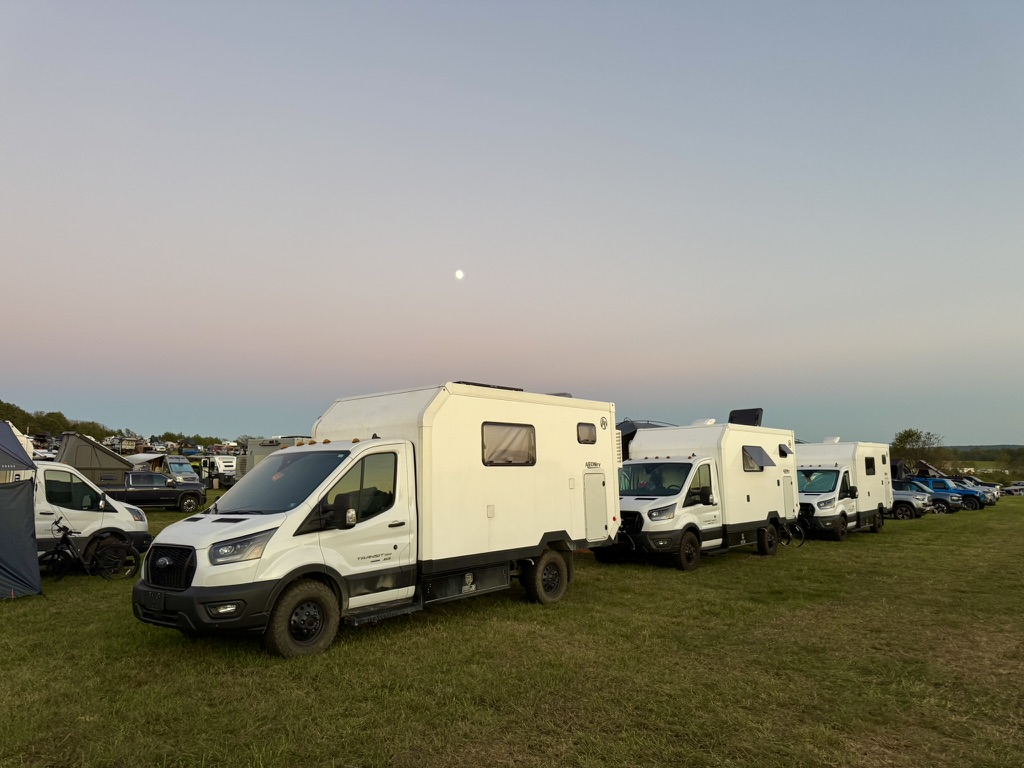 We kicked things off Thursday afternoon as a caravan of AEONrvs rolled into camp together through Oak Ridge Farm in Arrington, Virginia. Seeing all the AEONrvs camped side by side in the Overland Expo East camping area was a sight to remember. Owners set up camp in a U shape with their MoonShade awnings, creating a fun, shaded, centralized hangout area.